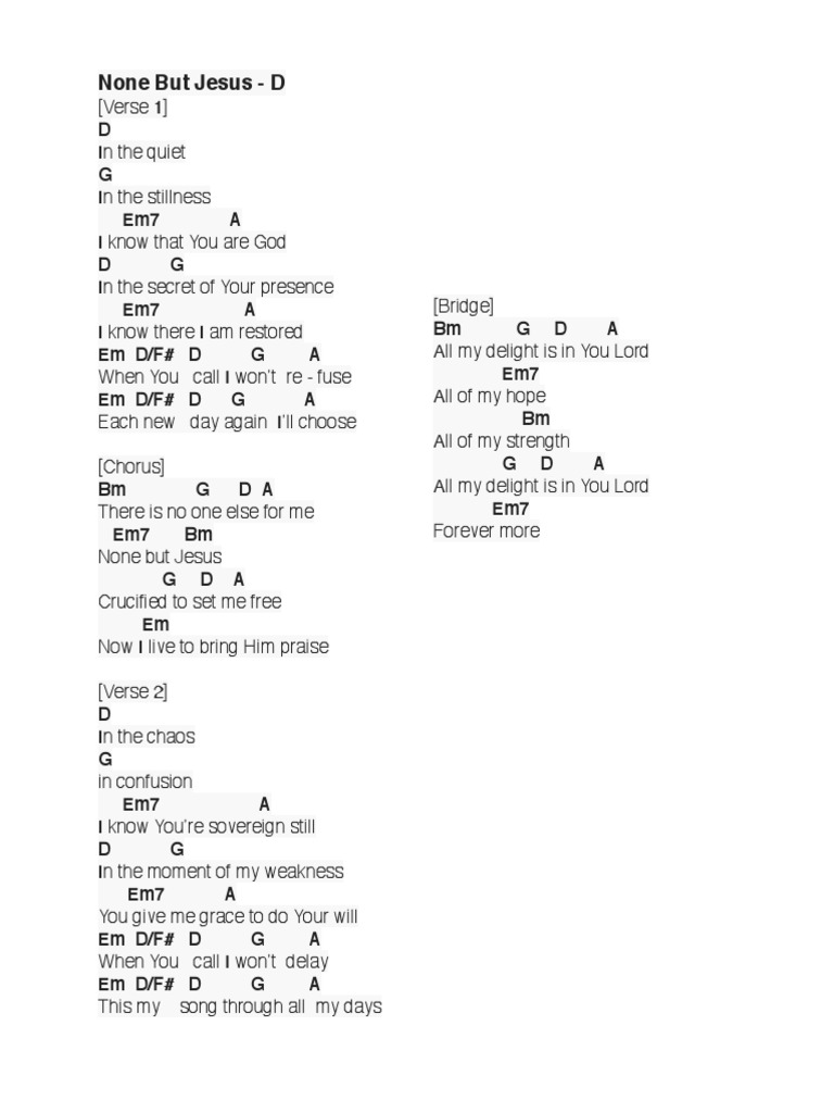 Get None But Jesus Sheet Music Free Pictures. Below is the none but jesus sheet music by christy nockels and other. In order to see the sheet music please click on the preview button next to the score you are interested in.